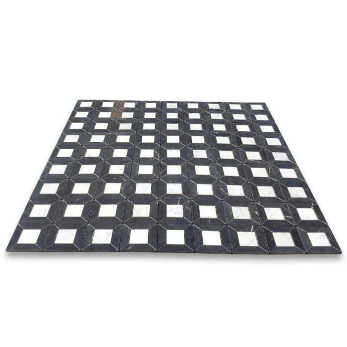 This marble tile is unique because of its dark grey color and alternating white-amber veins. Sometimes, you'll see orange striations on the marble tile.
